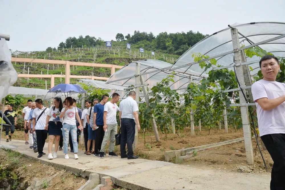 清晨瀘州市勝藍職業(yè)學校的工作人員早早的來到了基地,為今天的活動做好了準備。早上9點多,從古藺縣各個鄉(xiāng)鎮(zhèn)不辭辛勞趕來參加活動的創(chuàng)業(yè)代表已陸續(xù)趕到,首先由古藺縣大村鎮(zhèn)高山村浙川扶貧協(xié)作產業(yè)園總經理陳旭,帶領我們實地參觀考察了基地的建設、規(guī)模、設備設施配置等情況。在實地考察中創(chuàng)業(yè)代表們向種植專家龔永長提出很多專業(yè)性的技術問題,龔永長專家都一一耐心的在現(xiàn)場給大家做了解答。如葡萄種植的農田規(guī)范要求及注意事項,枝丫修剪根須培養(yǎng),黃葉病、噬心蟲病的防治等從專業(yè)技術上給大家做了詳細講解。