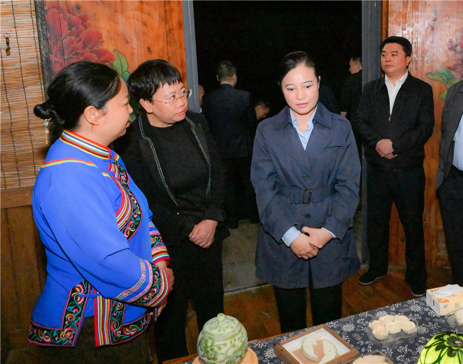 (10月19日,市委副書記、市政府黨組書記韋朝暉到靖州調研。圖為韋朝暉在靖州知青園調研雕花蜜餞非遺項目。懷化日報全媒體記者 潘雨 攝)