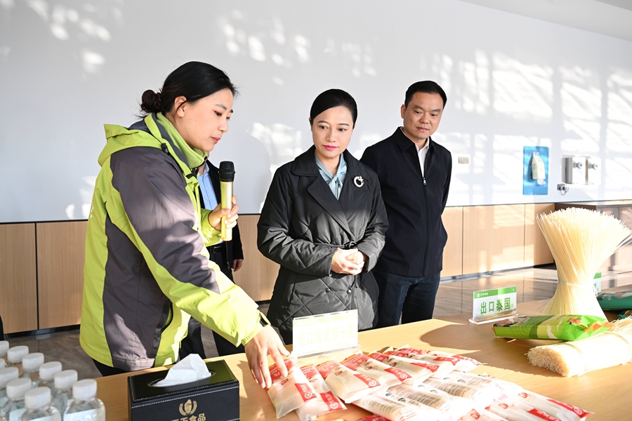 (12月5日下午,市委副書記、代市長韋朝暉在中方縣調(diào)研。圖為韋朝暉在懷化天天食品科技有限公司詳細(xì)了解農(nóng)副產(chǎn)品精深加工與東盟市場拓展等情況。懷化日報全媒體記者 吳濤 攝)