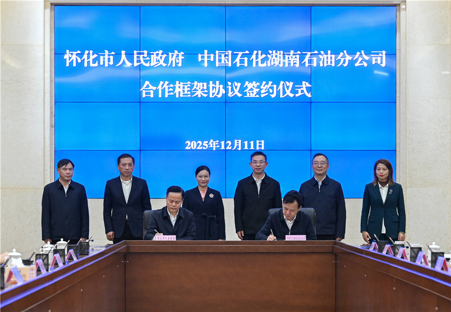 (12月11日下午,市政府與中國石化湖南石油分公司簽署合作框架協(xié)議。懷化日?qǐng)?bào)全媒體記者 吳濤 攝)