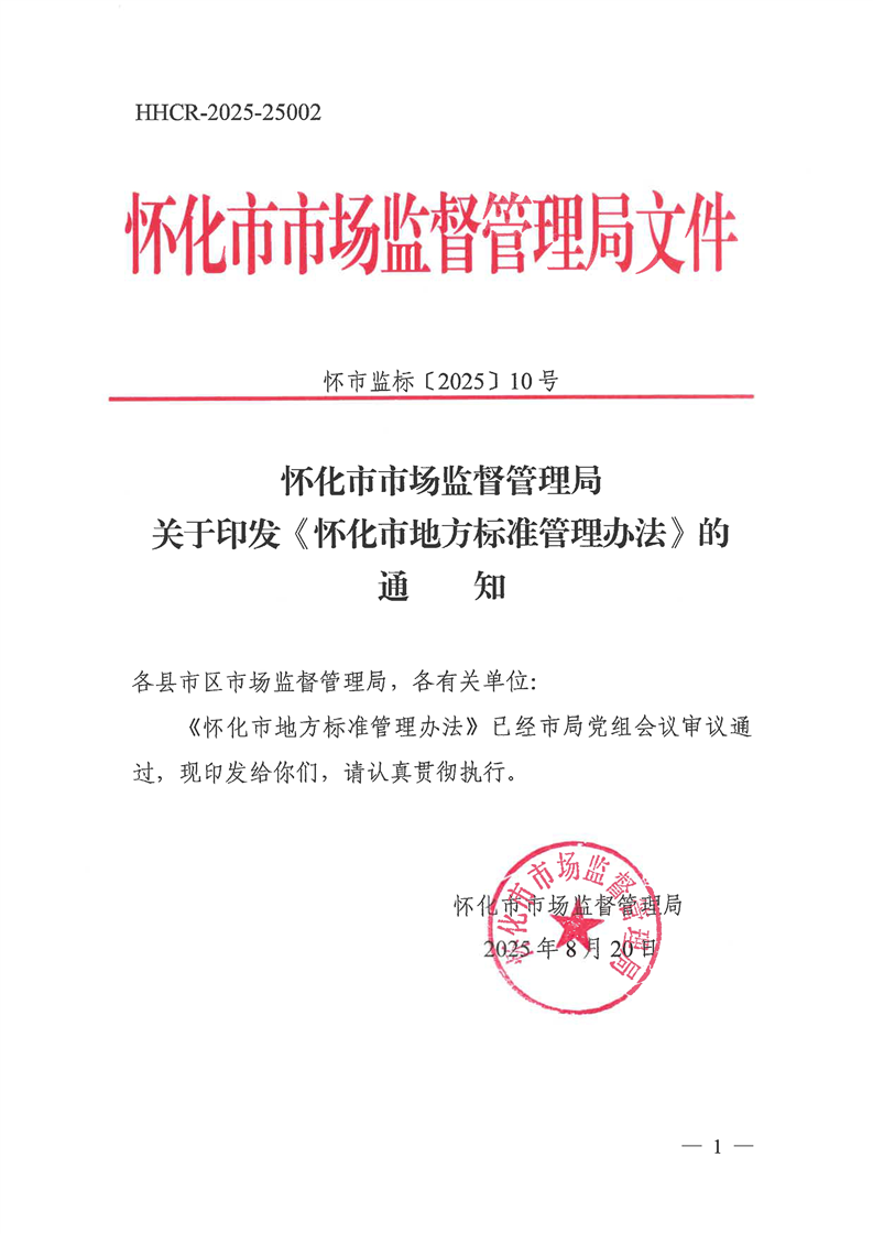 文號:懷市監(jiān)標〔2025〕10號
