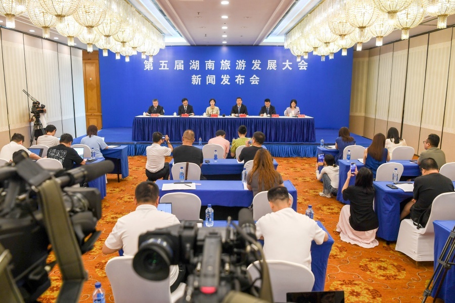 (8月7日上午,第五屆湖南旅游發(fā)展大會(huì)新聞發(fā)布會(huì)在長(zhǎng)沙舉行。)