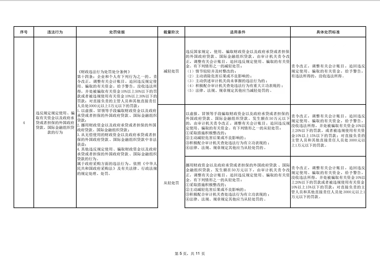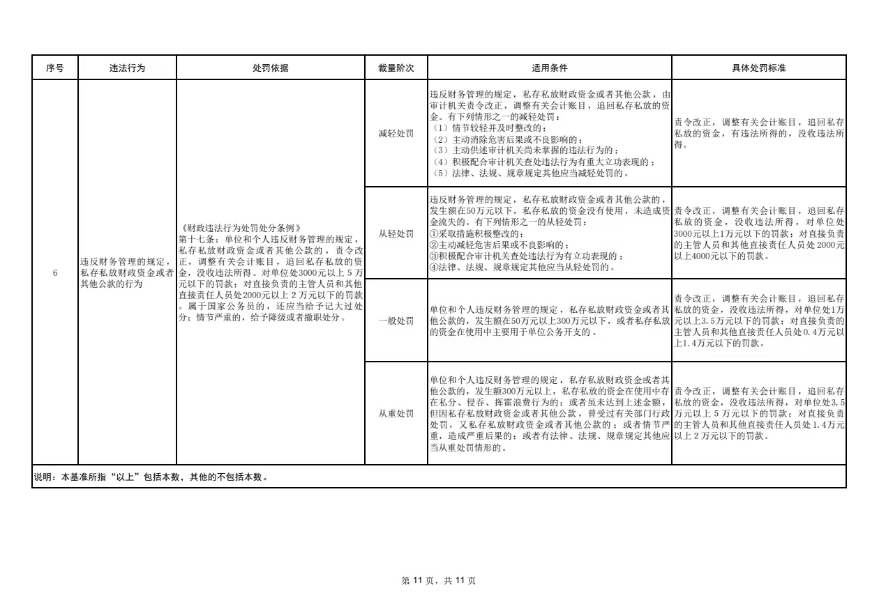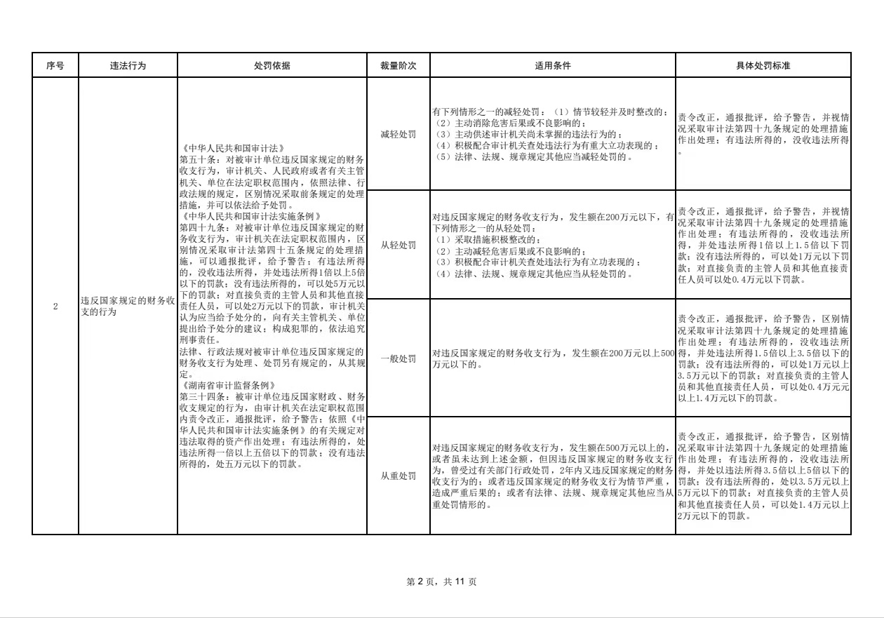 懷化市審計(jì)局行政處罰裁量基準(zhǔn)