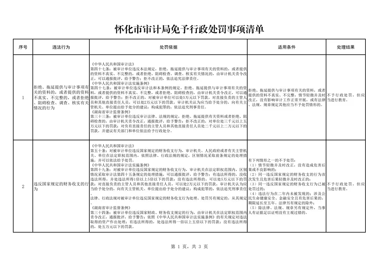 懷化市審計(jì)局免予行政處罰事項(xiàng)清單