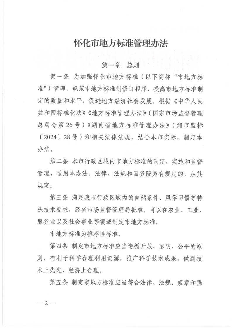 關(guān)于印發(fā)《懷化市地方標(biāo)準(zhǔn)管理辦法》的通知