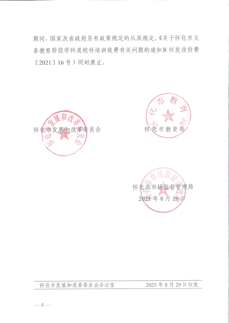 關(guān)于懷化市義務(wù)教育階段學(xué)科類校外培訓(xùn)收費(fèi)有關(guān)問(wèn)題的通知